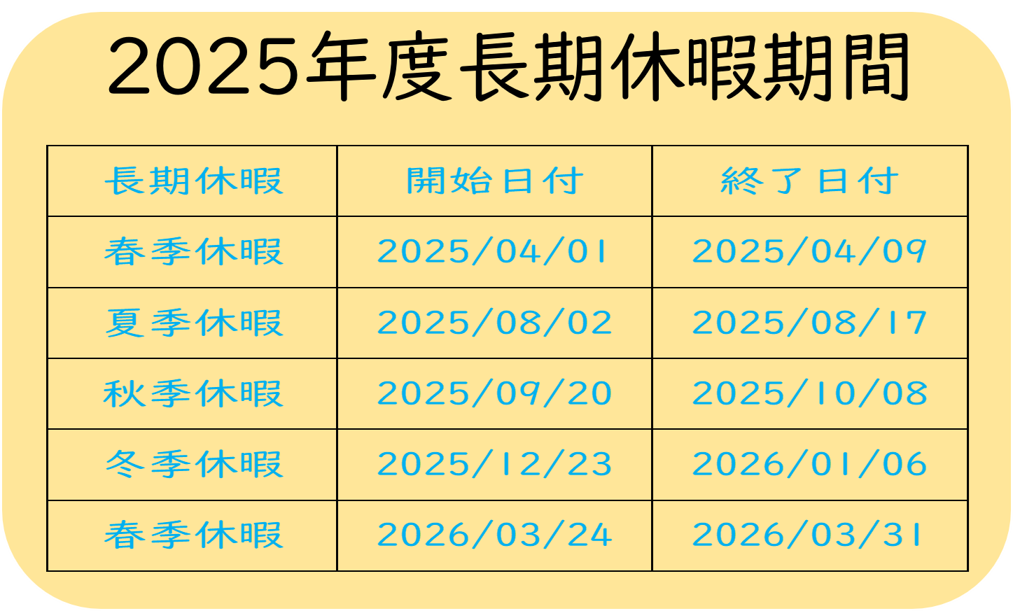 - 【年末年始休業のお知らせ】本年の年末年始の休業期間は2024年12月28日(土)から2025年1月5日(日)までです。